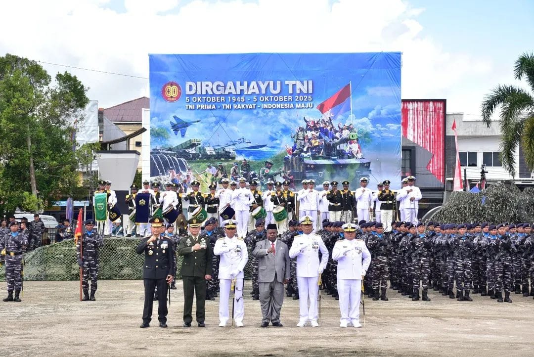 MabesNews.Tv, Sorong – Papua Barat Daya – Wakil Komandan Pasmar 3 Brigjen TNI (Mar) Andi Sultan Alimudin, M.Tr.Opsla., M.Han., didampingi Wakil Ketua Korcab Jalasenastri Pasmar 3 Ny. Elvie Sultan, menghadiri Upacara Peringatan Hari Ulang Tahun (HUT) ke-80 Tentara Nasional Indonesia (TNI) di Alun-Alun Aimas, Kabupaten Sorong, Papua Barat Daya, Minggu (05/10/2025).