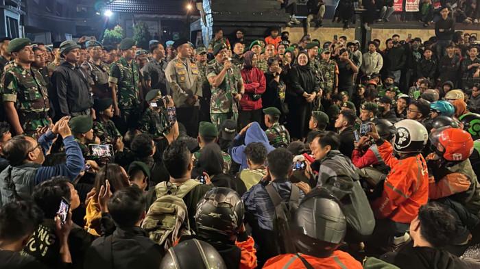 Pasukan TNI Tiba di Mapolresta Malang Kota, Panglima Divisi 2 Kostrad Temui Massa Aksi