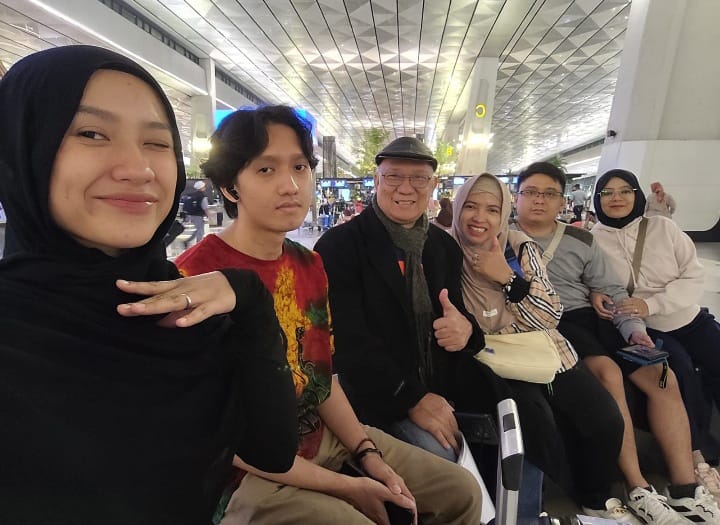 (Foto: Wilson Lalengke diantar istri dan anak-anaknya ke Bandara Soekarno Harta, Jakarta)